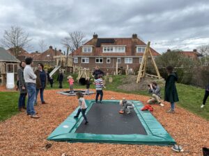 In de hete zomer van 2022 kon men aan de slag! Vijftien vrijwilligers hebben de speeltuin ivolledig ontmanteld. Ook het slopen gebeurde met oog voor duurzaamheid: het meeste hout is hergebruikt bij de nieuwe inrichting van de speeltuin. Zo zijn er nu een waterpomp, twee glijbanen, een klimwand, wilgentunnel, een tipi, balanceerbalken en twee trampolines. Ën er zijn een draaimolen en een nestschommel, beide geschikt voor gebruik met rolstoelen. De kinderen wachtte tijden de feestelijke opening op 18 maart 2023 een fijne verrassing. Er was extra speelmateriaal: een tokkelbaan en diverse touwschommels. De belangstelling voor de moestuintjes is groot, er zijn kweeperen en frambozen en de hele speeltuin heeft een groene uitstraling.