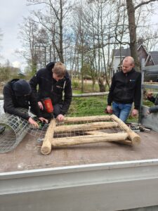 Er is hard gewerkt en met succes. Het beoogde hekwerk staat er. Er is ook een drietal poorten gemaakt, zodat alles, ook alle woningen, goed bereikbaar blijft. De omheining aan de bosjeskant is ook inmiddels gerealiseerd. Daarna zijn de inwoners aan de slag gegaan om de houtwal aan de kant van de Aanleg met hekwerk te beveiligen.