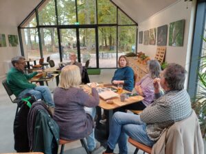 Daarna de natuur in: naar het compleet vernieuwde Natuurcentrum de Ginkel. Dat is prachtig geworden. Tijdens een versnapering in de mede door onze stichting gemeubileerde ontvangstruimte vertelde coördinator Hannah Pol daar meer over. Er is ontzettend veel te zien en te doen, binnen en buiten.