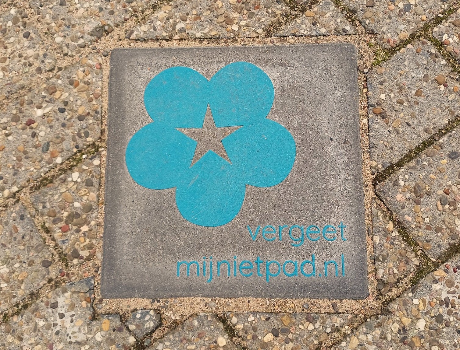 En dóór naar woonzorgcentrum Het Maanderzand, waar men in de buurt drie vergeet-me-niet-wandelroutes heeft gerealiseerd. Dementerende inwoners verdwalen nu minder snel in hun directe omgeving door stoeptegels met de afbeelding van een vergeetmenietje te volgen.