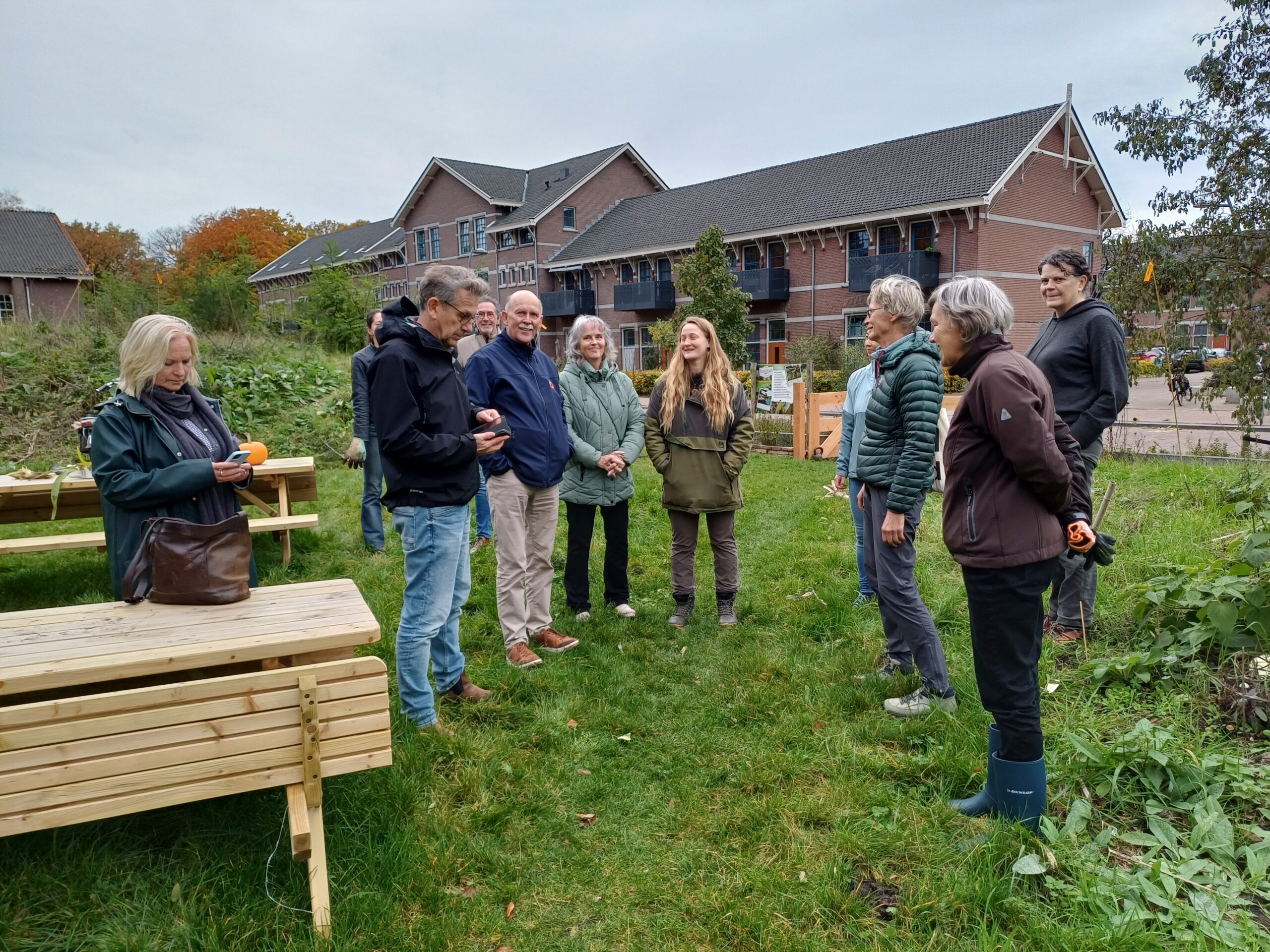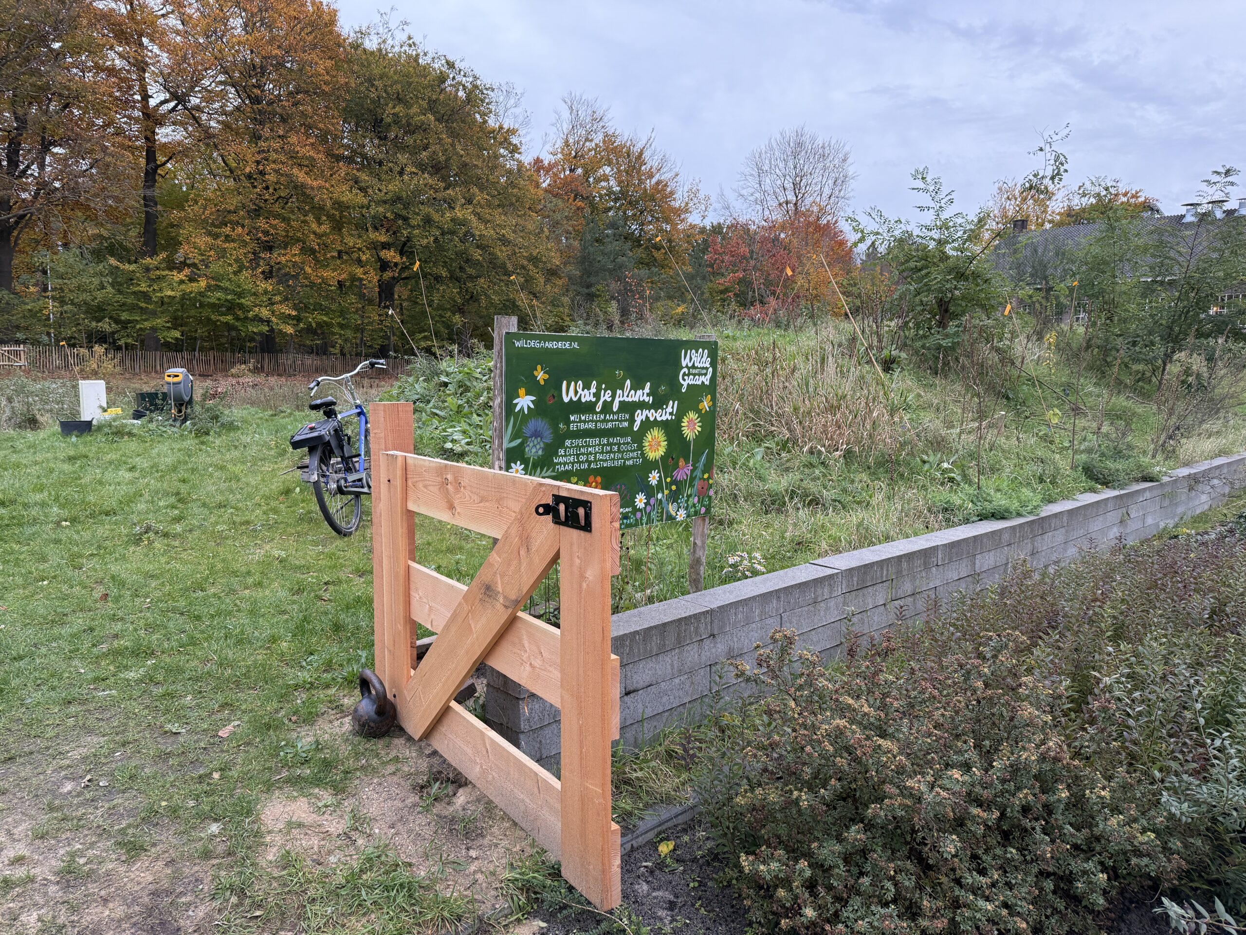 Volgende stop: Buurttuin De Wilde Gaard op de voormalige Prins Mauritskazerne. Na ons bezoek in 2024 geloofden we nu onze ogen niet. Onder de bezielende leiding van Annick Gaarthuis hebben talloze vrijwilligers veel werk verzet. Er is een prachtige bloementuin, er komt een plek om droog te zitten, er is een weggeefkastje, er komen loopeenden. In de vijver zitten tal van kikkers en salamanders, er komt een voedselbos. Kortom, te veel om op te noemen. Iedereen is welkom om te helpen, bezoek hun website voor meer informatie.