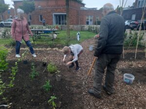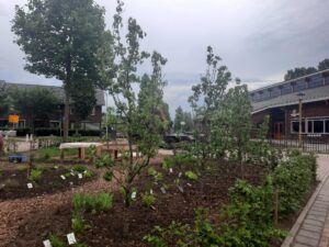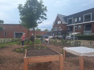 Begin mei 2024 is de buurttuin klaar voor gebruik! Afgelopen najaar is de grond geschikt gemaakt en zijn er palen en een beukenhaag geplaatst. Ook zijn voedselbosjes en fruitbomen aangeplant en de vijf moestuinbakken kunnen worden gevuld. Het is fijn dat het Kulturhus een watertappunt en een slang voor het water geven beschikbaar heeft. Veel bewoners gaven eerder aan contacten in de buurt te missen en men weet elkaar nu in de buurttuin vaker te vinden voor een praatje.