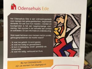 De dementerende moeder van Karin Streuper (verpleegkundige) genoot elders in het land van haar wekelijkse bezoek aan een Odensehuis. Er zijn in ons land al meer dan 40 van deze laagdrempelige ontmoetingsplekken voor thuiswonende ouderen met geheugenproblemen en beginnende dementie. Karin merkte op dat er in Ede nog geen was. Navraag bij diverse Edese organisaties leerde dat er wel degelijk behoefte is aan een Odensehuis. Tijd voor actie dus!
